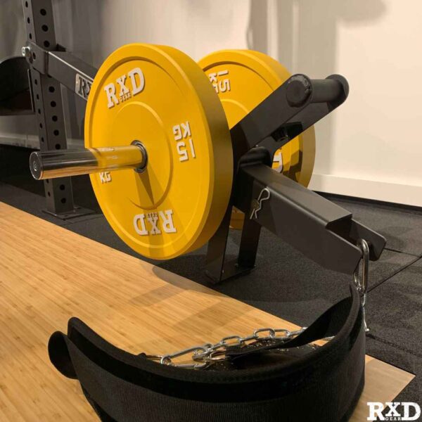 De RXDGear Belt Squat Attachment maakt het mogelijk om zware belt squats uit te voeren zonder extra machine. De belasting wordt via de heupen verdeeld, waardoor rug en wervelkolom worden ontzien. Eenvoudig te monteren op RXDGear rigs en racks en geschikt voor olympische 50 mm halterschijven tot 400 kg.