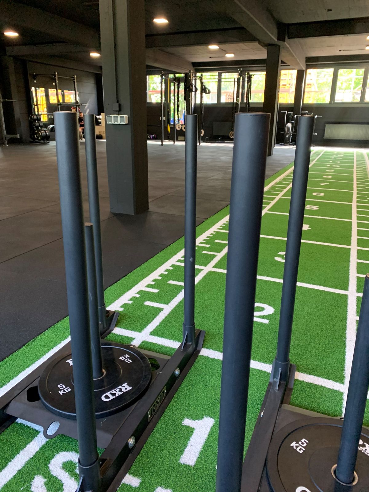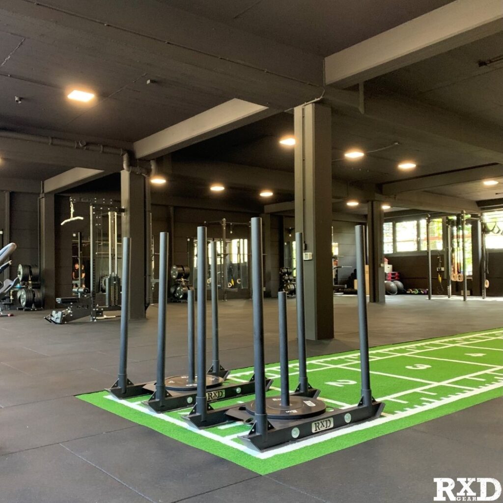 Voor een complete Hyrox-opstelling levert RXDGear alles wat je nodig hebt: sled push- en pullzones met professionele sleds en kunstgrasbanen, wall ball targets met stevige ballen en duidelijke hoogtemarkeringen, indoor tracks voor het hardloopgedeelte en farmer’s carry setups met zware kettlebells of dumbbells.
