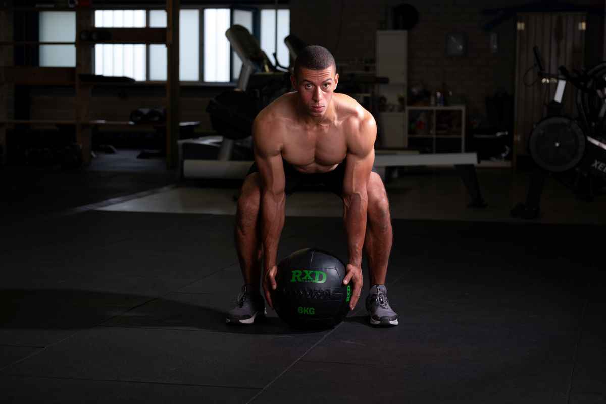 Elite wall ball 6kg in de spotlights.