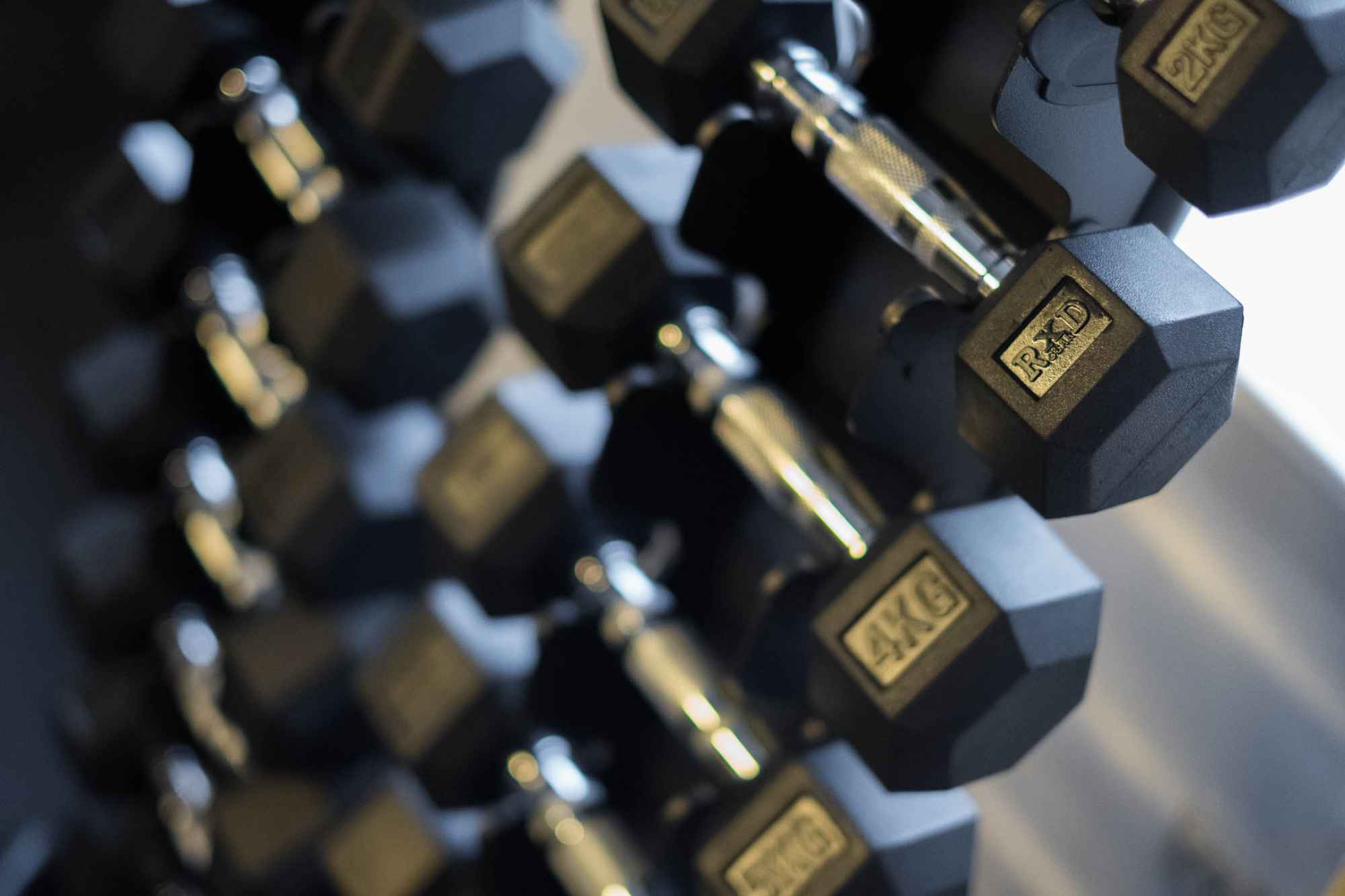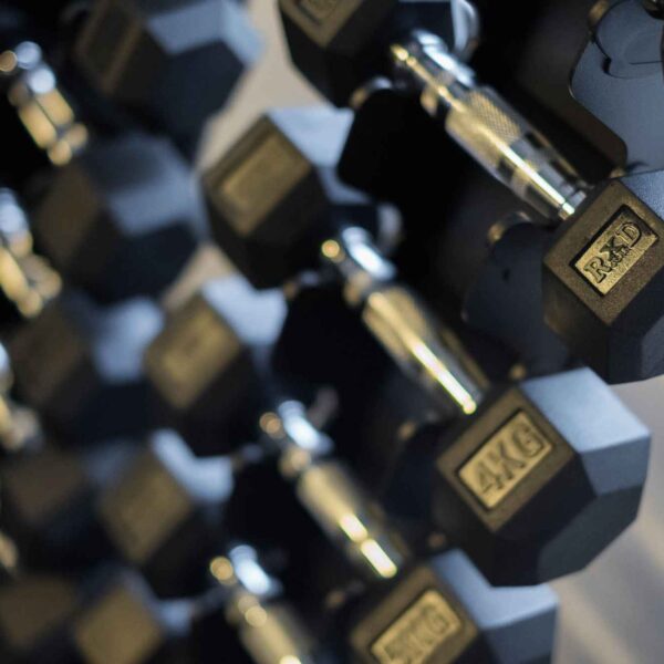 Vertical dumbbell rack 1kg – 10kg in de spotlights.