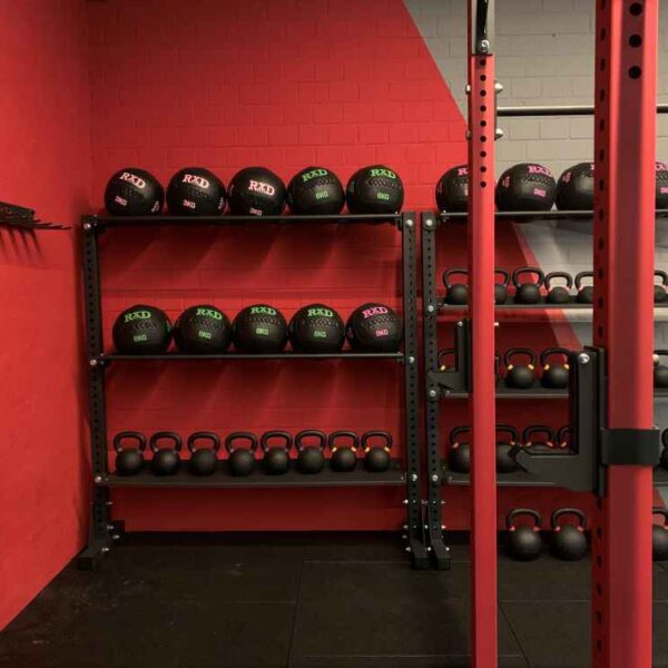 De RXDGear WB / Plate storage 180cm in rig is gemaakt om wall balls en plates op te bergen in een rig of in het upright storage system. Er kunnen vijf wall balls op één storage line van 180cm geplaatst worden. De plates worden gescheiden door de RXDGear – Bumper plate blocker black (RXBP-BL-00), deze zijn los bij te bestellen.